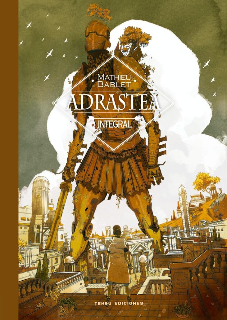 Hasta la fecha, mi relación con la producción de Mathieu Bablet ha sido más o menos de amor-rechazo —que no odio, eso nunca. Me gustó, y mucho, ‘Shangri´La‘; me quedé frío con ‘La bella muerte‘; aluciné, y no podéis imaginar hasta qué punto —ni falta que hace, podréis verlo en unos días— con esa maravilla que es ‘Carbono & Silicio‘; y temía que, con la magnífica edición que Tengu le hace a su ‘Adrastea‘ en las manos, este relato de corte mitológico pasado por las filias del autor francés cumpliera con la tendencia de la serie formada por sus tres proyectos anteriores y volviera a dejarme con el ánimo indiferente. Pero, como podréis imaginar por el título de la reseña, no ha sido así, y el despliegue que el francés nos ofrece en las páginas de este álbum lo posiciona ya, sin lugar a dudas, como uno de mis autores europeos favoritos de la actualidad. Y es que lo que ya nos parece anunciar la cubierta del volumen es que estamos a punto de adentrarnos en una forma de interpretar la mitología clásica que no es para nada lo que tenemos en nuestro bagaje. Lo que encontramos, no obstante, en el interior, supera con mucho hasta nuestras más descabelladas ideas previas.