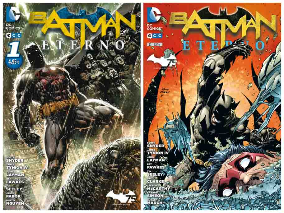 Las dos entregas que ECC pone en circulación dejan con ganas de más, pudiendo disfrutar de una historia oscura y deprimente, que se devora desde la primera hasta la última página. Gran culpa de ello la tiene el estupendo grupo de guionistas que se encuentra tras Batman Eterno. Para empezar son Scott Snyder y James Tynion IV los encargados de proporcionar las directrices de la colección, bases que después serán desarrolladas por gente tan capaz como John Layman, Tim Seeley y Ray Fawkes. Una serie de nombre lo suficientemente interesantes como para llamar la atención de aficionado más reticente a este tipo de proyectos.