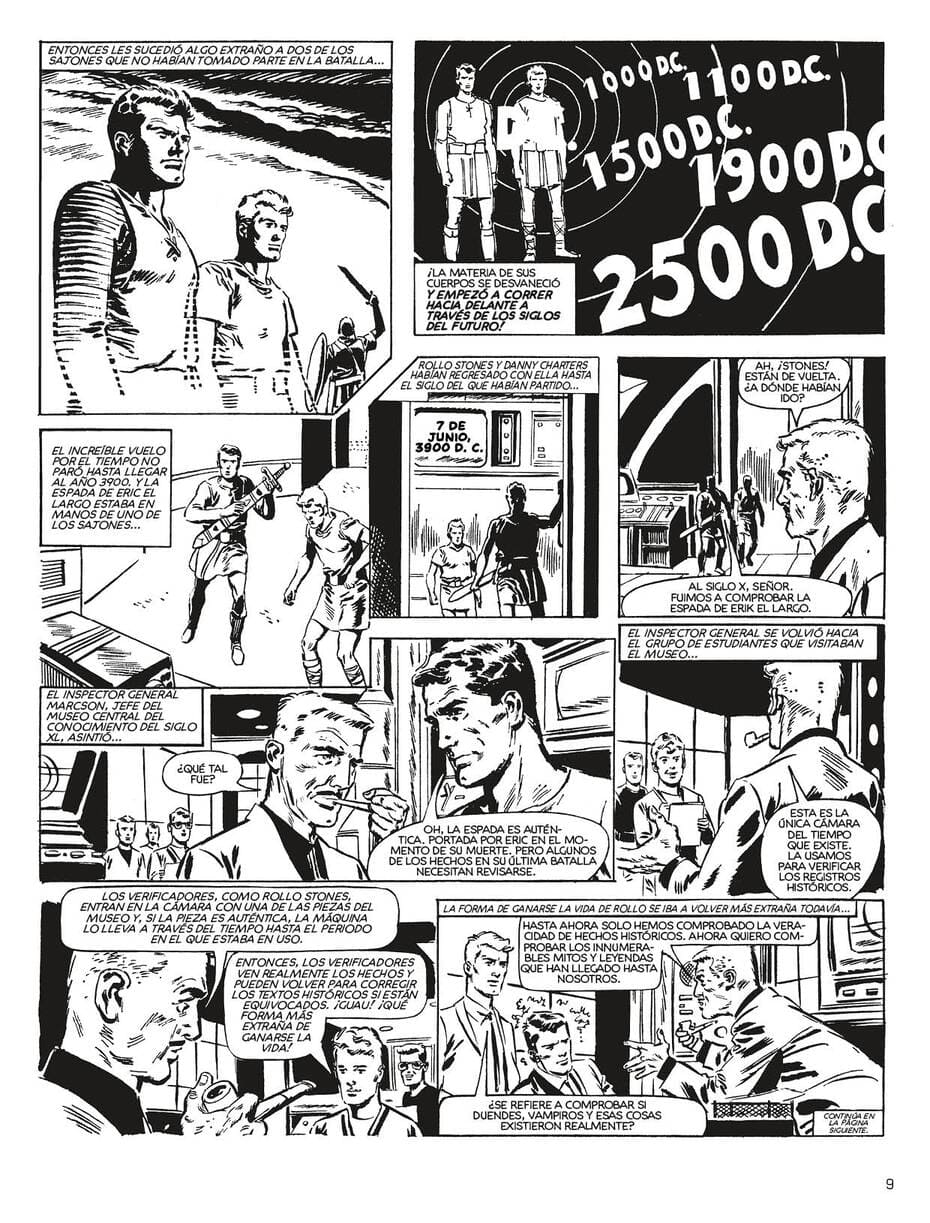 El dúo protagonista está integrado en la tradición de parejas masculinas asexuadas tan frecuentes en el medio, establecen una continuidad entre los arcos que abarcan sus aventuras sin que haya indicios de una vida privada más allá de su trabajo en el museo. El protocolo previo a cada misión es un tanto confuso, su superior les entrega un objeto legendario sin una data histórica concreta y son ellos los que deben intuir a qué época les trasladará, por lo que queda a su criterio la indumentaria y enseres que portarán, cualquier arma moderna queda excluida de su equipamiento. Mientras acometía la lectura del tomo no han sido pocas las veces que me he preguntado si la paga les compensa.