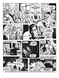 Los que conocemos la obra de Bernet a través de trabajos posteriores como ‘Torpedo’ o ‘Clara de Noche’, aquí lo encontramos irreconocible. Muy deudor de sus primeras influencias, en un estilo más cercano al depurado Alex Raymond de ‘Rip Kirby’, transita pronto hacia Caniff; se intuye como parte de su evolución hacia la síntesis que terminaría germinando años más tarde. Su narrativa se ve coartada por el formato de publicación semanal original, que obligaba a condensar en apenas un par de páginas toda la información necesaria para que cada entrega gozara de cierta enjundia. Amén de la generosidad con la que Baker añade tiempo de lectura a cada página con la aportación de un narrador omnipresente; que tiene su encanto si consigues que en tu cabeza suene con la voz de un locutor de serial radiofónico.