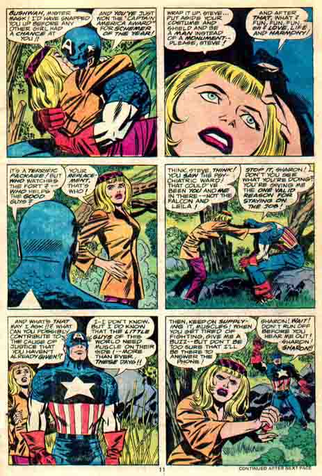 Uno se puede hacer una idea de lo que le espera si atendemos al hecho de tener a Kirby como autor completo, guión y dibujo, dándolo todo a la hora de inventarse amenazas y situaciones de lo más alocadas. Para empezar, El Capitán y El Halcón se las tendrán que ver con unos monstruos bastante amenazantes, unos tipos completamente fuera de sí y, el plato fuerte del volumen, un viaje por el tiempo a través de la historia de Los Estados Unidos.