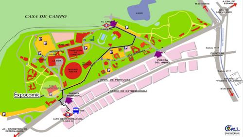 El Metro y el Bus ya son otro cantar. El autobus (líneas 31, 33, 36, 39 y 65) te deja en la avenida Extremadura, desde allí debes dirigirte hasta la avda. Portugal y prácticamente estarás enfrente la Entrada del Recinto. La línea 6 de Metro también te deja prácticamente en el mismo sitio que las líneas de bus, sin embargo la línea 10 te deja en la Estación del Lago, por lo que tendrás que atravesar esa parte de la Casa de Campo hasta llegar al Pabellón de Convenciones.