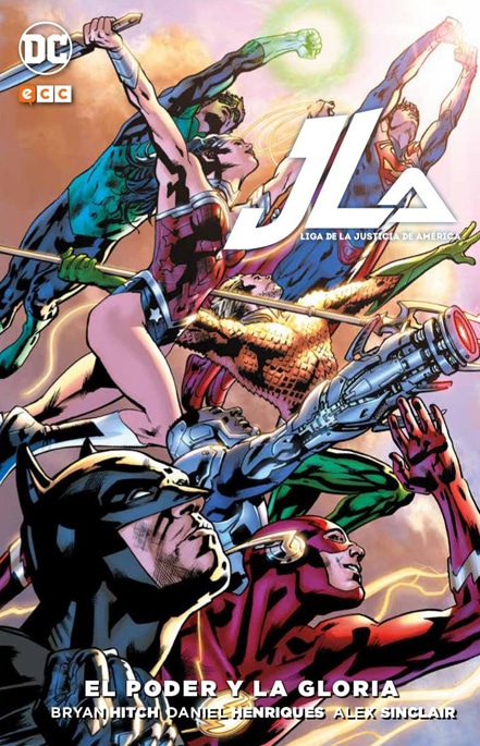 ‘JLA: El Poder y la Gloria’ es uno de esos tomos cuyo mayor reclamo reside en el nombre del autor encargado de firmarlo, en este caso, un Bryan Hitch que toma las riendas de guión y dibujos, autor completo para una historia que tardó en completarse debido a la lentitud del británico a la hora de entregar los lápices. A nosotros nos da un poco igual ya que ECC Ediciones ha tenido a bien recopilar la saga de nueve números en un práctico volumen de tapa dura para goce y disfrute del respetable. El bueno de Hitch, conocido principalmente por su trabajo en The Ultimates para Marvel y The Authority para DC (Wildstorm), con Mark Millar y Warren Ellis a los respectivos guiones, ha ido introduciendo en sus relatos detalles que le funcionaron en estas dos obras, trucos y tramas que dejaron al lector con la boca torcida y que usa para intentar repetir resultados. No es un mal truco, al fin y al cabo, aprendió de los mejores.