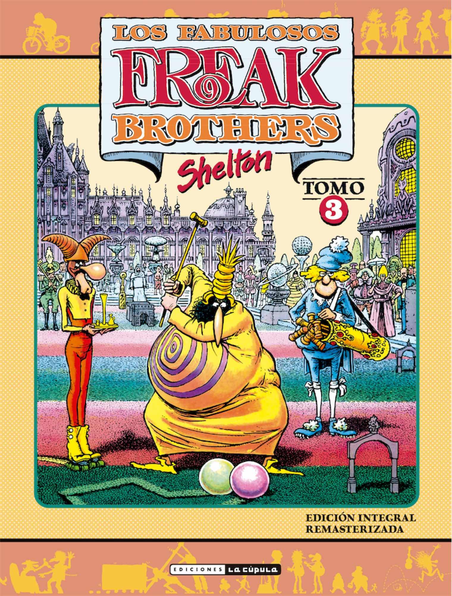 La editorial La Cúpula sigue a lo suyo, publicando obras que, de alguna manera o de otra, consiguen captar la atención del aficionado a pesar de los gustos que éte pueda tener. Su catálogo atesora auténticas joyas modernas, algo que no le impide rescatar en ediciones mayestáticas clásicos con algo más de recorrido a sus espaldas. Actualmente podemos disfrutar de dos de los pilares del cómic underground o independiente americano, ‘Odio‘ de Peter Bagge y uno de los títulos clave en la carrera de Gilbert Shelton, ‘Los Fabulosos Freak Brothers‘ del que hoy toca hablar de su tercer volumen integral. Las aventuras de Freewheelin´ Franklin, Fat Freddy y Phineas Freakears no puede ser más sencilla, directa y políticamente incorrecta: tres hippies cuya máxima aspiración en la vida es estar de fiesta y consumir drogas (especialmente la marihuana y sucedáneos). Esto incluye desarrollar una animadversión tremenda a todo lo que esté relacionado con hacer algún tipo de esfuerzo, por ejemplo, buscar un empleo para poder pagar los vicios. Añadan evitar a la policía a toda costa y sus buenas dosis de crítica a la política de derechas y tendrán uno de esos tebeos de los que siempre se dicen cosas buenas y positivas.