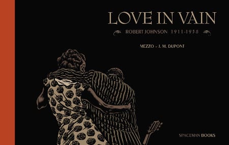 Su peripecia vital, de la que apenas quedaron testimonios dispersos de la gente que lo conoció, ha quedado plasmada ahora en un cómic realizado por el guionista J. M. Dupont, que ha desarrollado su carrera principalmente en el mundo de la publicidad y la comunicación, y el dibujante Mezzo, a quien recordamos sobre todo por sus cómics de serie negra en colaboración con el guionista Michel Pirus. Juntos repasan la biografía de Johnson, atendiendo no solo a los detalles que más o menos están confirmados sobre su vida, sino también a las leyendas que se forjaron a su alrededor, como esa tan famosa que decía que Robert se encontró una noche con el diablo en un cruce de caminos y que hizo un pacto con él para convertirse en el guitarrista de blues más prodigioso de toda la historia. Una leyenda muy acorde con sus raíces sureñas, con ese mundo casi mitológico que se ha desarrollado en torno a las orillas del Misisipi, y que algo de verdad quizá tenga, pues se tiene constancia de que las primeras actuaciones de Robert no fueron precisamente memorables, y que de pronto, casi de la noche a la mañana, se descubrió como un guitarrista portentoso, un emotivo cantante de voz desgarrada, y un liricista capaz de plasmar en unos versos aparentemente sencillos todo su desasosiego vital.