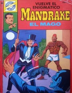 Para quienes no lo conozcan, Mandrake es un mago que emplea el ilusionismo, la hipnosis y, bueno, la magia, para combatir el crimen y correr aventuras. Creado en 1934 fue sin duda uno de los primeros superhéroes, aunque nunca fue considerado como tal, quizá por su fijación con la temática del ilusionismo o por la carencia de identidad secreta. Su creador, Lee Falk, lo trajo al mundo en 1934, y también es el responsable de ‘The Phantom’, en 1936, que sí es considerado el primer superhéroe de la historia.