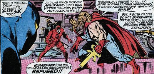 Las aventuras más livianas del grupo contrastan con las que tienen un trasfondo social y una leve pátina de denuncia: habían llegado los 70 y temas como la discriminación racial empezaban a tener su reflejo en los cómics. Así, en estos números, uno de los personajes recurrentes es Pantera Negra, que se convierte en el representante de esa tensión social racial que se vive en el momento. Muy significativo es el hecho de que este personaje reivindique su elección profesional (en su vida civil es profesor de un barrio marginal) como una heroicidad como la que puedan representar figuras como el Capitán América o Iron Man.