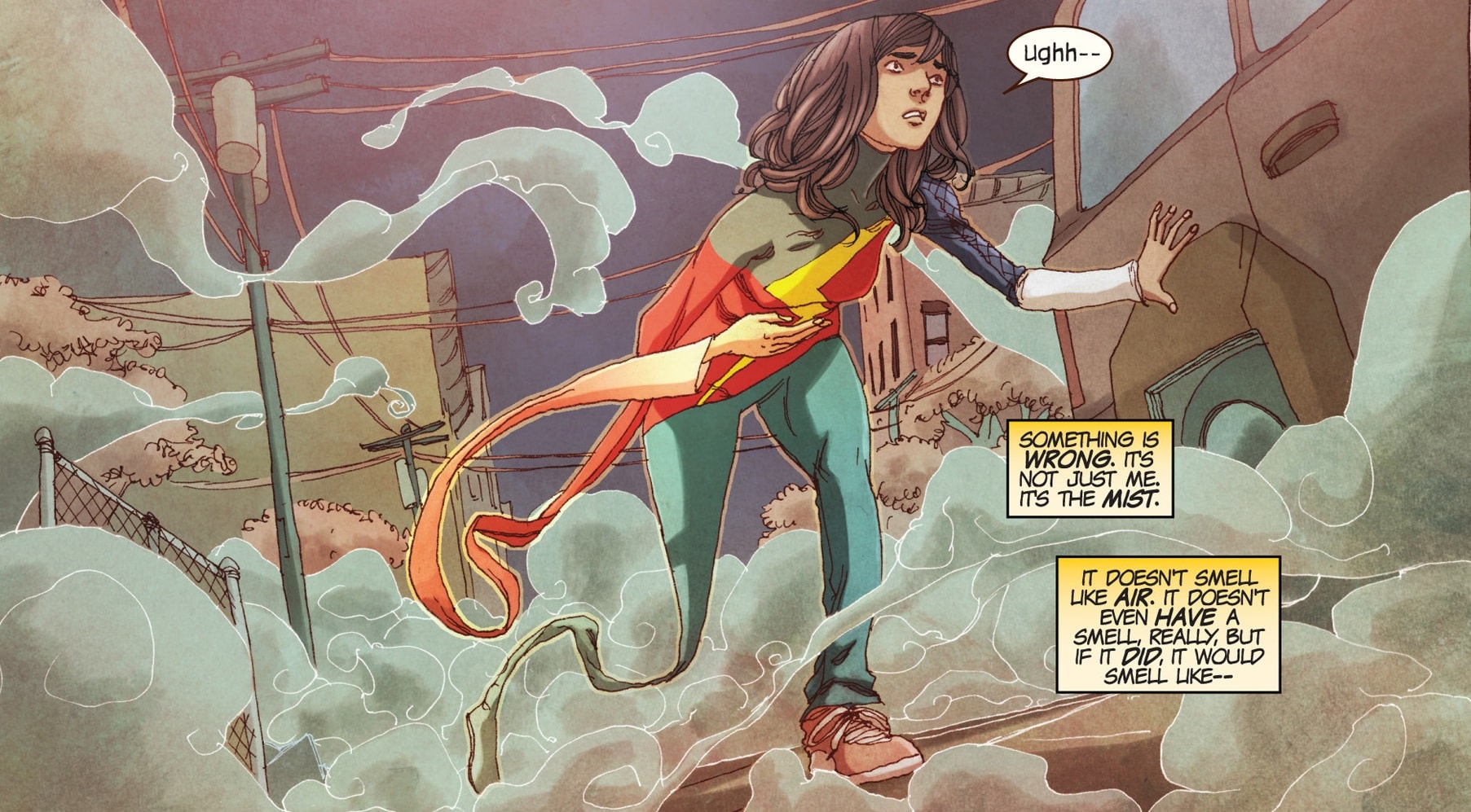 Si el nuevo Motorista Fantasma era un chico latino de un barrio marginal, este cómic nos presenta a Kamala Khan, una adolescente musulmana de origen paquistaní y afincada en Nueva Jersey. Tiene unos padres bastante conservadores (aunque no le hacen llevar el tradicional hiyab) y le ocurre lo que a cualquier adolescente. En uno de los enfrentamientos con sus padres para asistir a una fiesta, Kamala se escapa de casa y, a la vuelta, es sorprendida por una extraña niebla que le concede un deseo: ser Ms. Marvel, la superheroína (todo ello conectado con hechos anteriores de la continuidad del universo Marvel que no nos interesan). A partir de entonces, Kamala descubre que su cuerpo tiene poderes metamórficos y tendrá que empezar a controlarlos, así como aprender a convivir con ellos como adolescente.