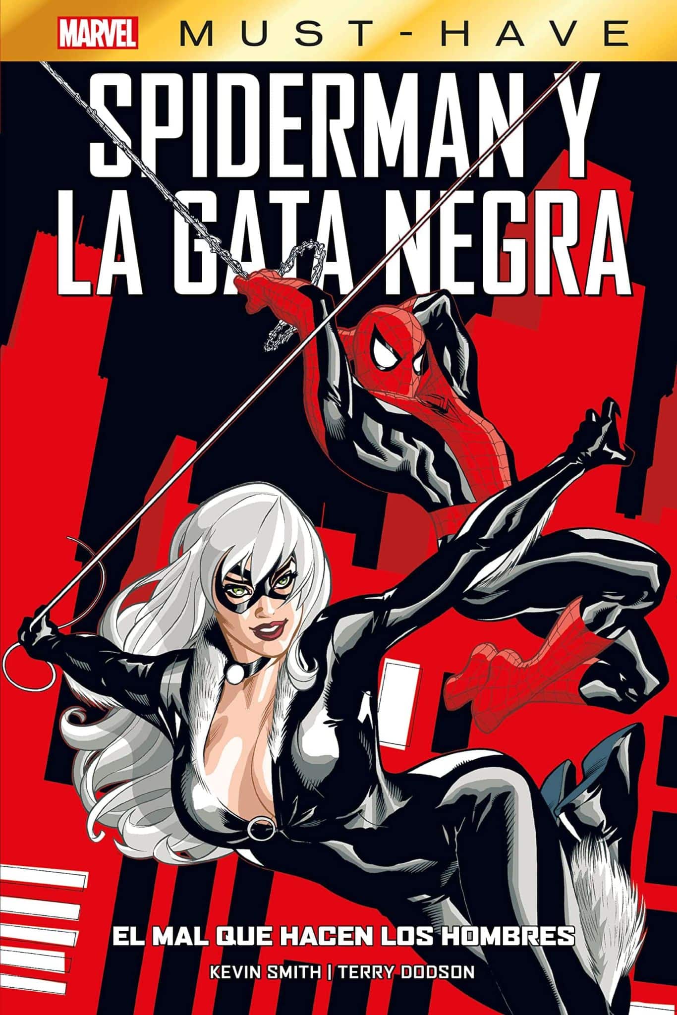 Pocos podían imaginar cuando a finales de los años setenta Marv Wolfman y Dave Cockrum creaban un personaje como La Gata Negra que, décadas después, alcanzaría un nivel de deslumbramiento como el que exhibe en el material recogido en este ‘Marvel Must-Have Spiderman y La Gata Negra: El Mal que Hacen los Hombres’. No es nada nuevo que Felicia Hardy ha traído por la calle de la amargura al bueno de Peter Parker en más de una ocasión y, de nuevo, va a recurrir al amistoso vecino para que le eche una mano en la investigación de una amiga desaparecida. Un personaje, esta Gata, que no deja de sorprender al lector puesto que estamos ante el típico héroe que va cambiando de bando según el beneficio que pueda sacar de cada situación. Ahora villana, después aliada ocasional o heroína que siempre ve la posibilidad de lucrarse de alguna forma. Para el presente reencuentro entre ambos personajes se contó con un equipo de auténtico lujo: el guionista Kevin Smith y el dibujante Terry Dodson. El contar con el cinematográfico Smith supuso un arma de doble filo para la miniserie, ya que los compromisos laborales de alguien tan importante le impidieron terminar el trabajo a tiempo y la finalización del proyecto se alargó seis años, un tiempo demencial que acabó con la paciencia de muchos de los lectores que habían decidido darle una oportunidad. Nosotros no vamos a tener que sufrir estos retrasos y gracias a la nueva edición de Panini podemos acometer la lectura de un tirón y sin preocupantes parones.