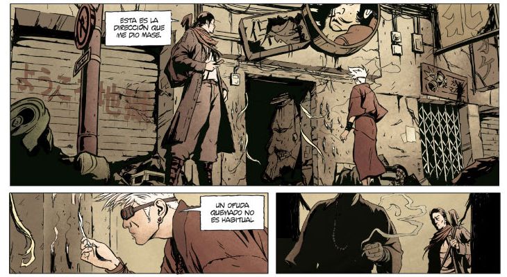 El mundo al que nos transporta ‘Yokai‘ es un Japón alternativo donde se mezcla la tecnología de un futuro cercano con la tradición milenaria, y lo que es más importante, donde la línea entre el mundo físico y el sobrenatural está desdibujada. En este ambiente se desarrolla lo que podríamos decir una historia policíaca, o quizá también un thriller, con elementos sobrenaturales. Y es que, como hace siempre Sergio, todo ese elemento del folclore oriental es demasiado rico e interesante para no ser aprovechado en la trama. Se nota el trabajo de documentación que ambos han hecho para llevar a cabo el álbum.