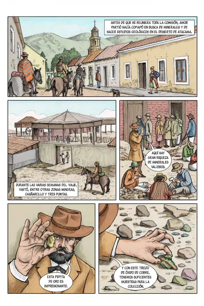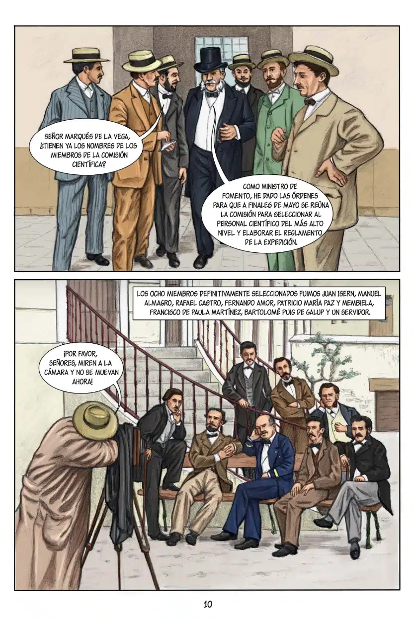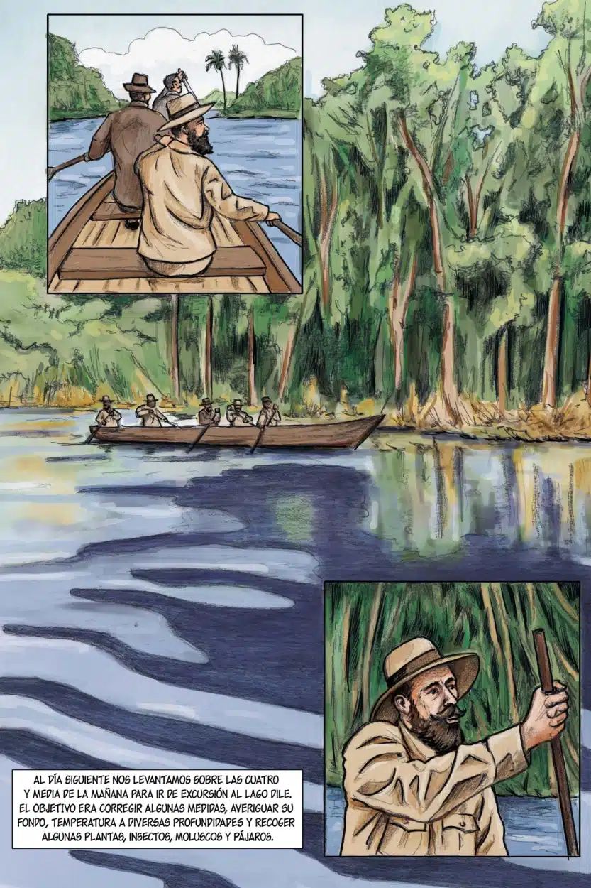 Mucho de este espíritu hay en este álbum que nos acerca a un hecho real, poco conocido salvo para los expertos, como es esta expedición por varios países del continente americano, tanto del sur (donde tendrá lugar el grueso de la acción) como del norte, por parte de un grupo de estudiosos que albergaba en sus filas expertos en disciplinas tan dispares como la zoología, la botánica, la mineralogía, la medicina o el dibujo. Una odisea en pleno siglo XIX heredera de la mítica investigación de Charles Darwin, cuya sombra abre el relato, y que a pesar de no ser ajena a los intereses políticos de la corona española en territorio americano, habría de ser clave para futuras instituciones como el Museo Nacional de Ciencias Naturales.
