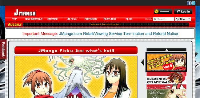 Fatídica noticia para los otakus de estos lares. Hace cosa de un año empezó el boom de JManga, una web accesible para todo el mundo en el que cualquier lector podía leer de forma completamente legal manga. Esto era posible gracias a una alianza entre distintas editoriales de manga en EEUU. Pues bien, la empresa ha anunciado su cierre definitivo.